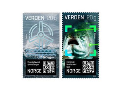 The Research, Innovation, Technology series is being issued this year for the third time. The themes are Equinor’s wind power initiative Hywind Tampen and Stingray’s laser removal of salmon lice. By scanning the QR code on the stamps, you will be directed to the Research Council of Norway’s website, where both the technology and the backstory are explained.