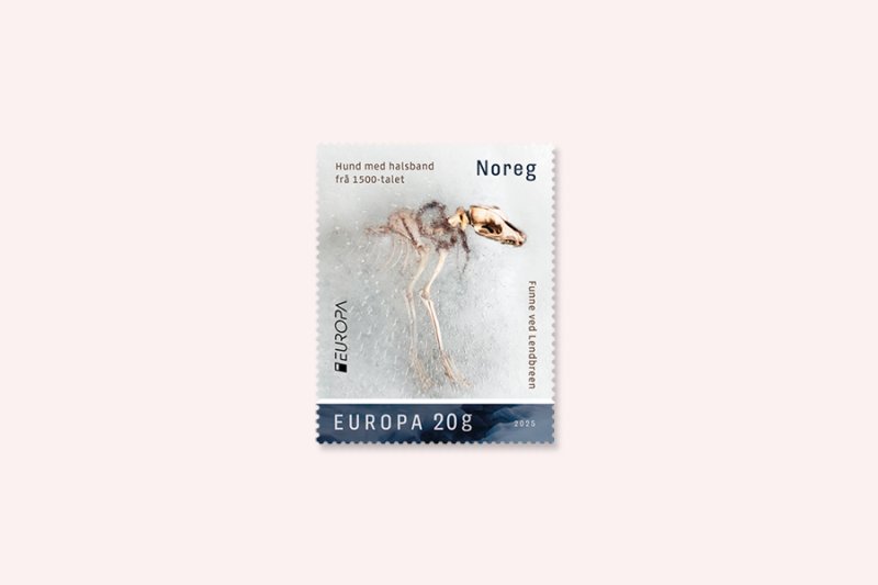 Hunden som i 500 år var frosset og gjemt i isbreen i Skjåk er kåret til Europas fineste frimerke for 2025.