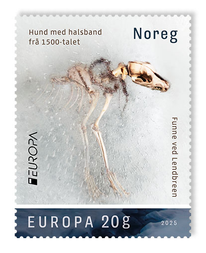 Hunden som i 500 år var frosset og gjemt i isbreen i Skjåk er kåret til Europas fineste frimerke for 2025.